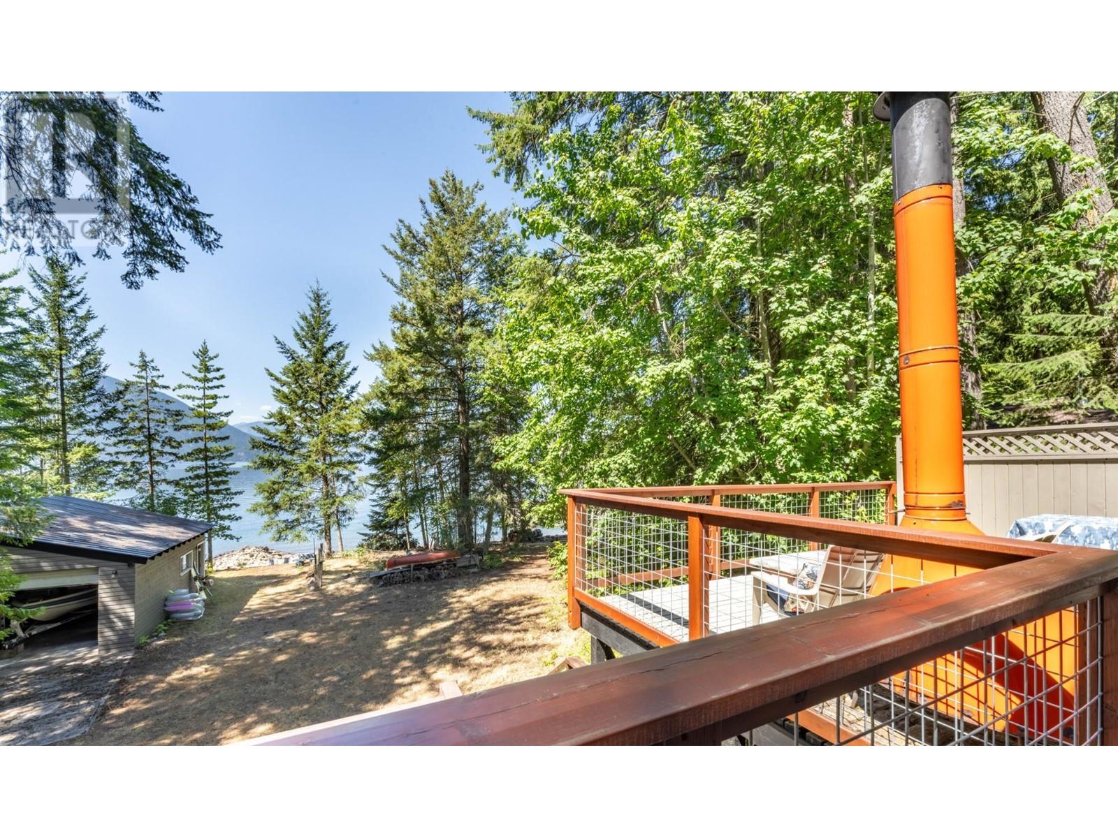 Tucked in the shade this 3 bedroom, 2.5 bathroom waterfront home features a 0.67 Acre lot! Some updates include new flooring throughout and bathrooms. The expansive sun deck is perfect for your family gatherings and entertaining friends BBQing while enjoying the beautiful Mountain and Kootenay Lake views. The addition was completed in the 1980's and provides an open and bright comfortable living space that includes a large master suite on the second floor with an ensuite. The driveway leads right down to the water, where you'll find a nice garage for all your toys and Boat. Beautiful private beach area for all your summer time fun! Mature trees give you privacy and beauty. Fenced in garden, multiple out buildings. This Lake home has so much to offer! Call your Realtor today! (id:4069)
