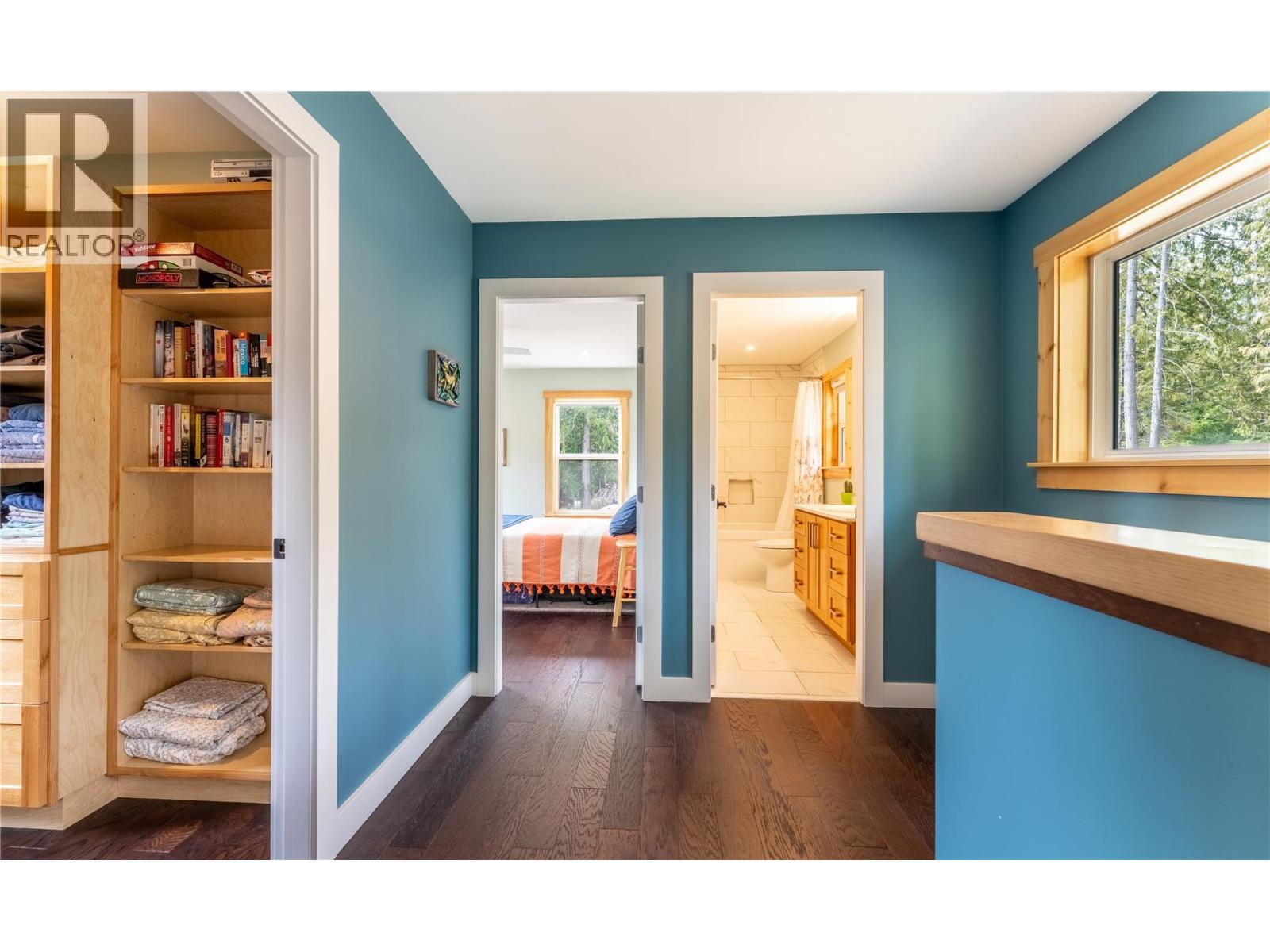 Experience the tranquility of living in this beautiful new home overlooking Crawford Creek! Embrace the soothing sounds of flowing water and breathtaking mountain views from this cozy retreat. The open floorplan on the main level boasts a copper sink, spacious pantry, in-floor heating, main floor laundry, and a wood stove. Natural wood accents throughout highlight the home's connection to nature and add a touch of elegance. Upstairs, you'll find two generous bedrooms and a full bathroom. Relax on the covered porch at any time of day and take in the serene surroundings. This low-maintenance property offers easy living - just move in and unwind. Additional features include a double garage for storage and parking. Located near Kootenay Lake, in the vibrant artistic community of Crawford Bay, this home offers the perfect blend of comfort and natural beauty. (id:4069)